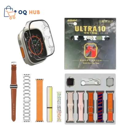 The Ultra 10 Smartwatch boasts a sleek, modern design with a robust metallic frame, ensuring both style and durability for any occasion.